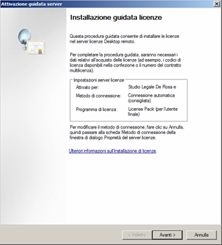 Una volta attivato il server, procedere con l’installazione delle licenze: